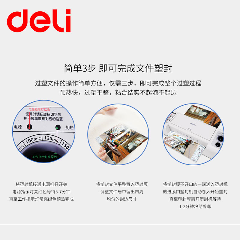 Deli Plastic Sealing Machine 3891 Commercial Professional A4 Paper Photo Laminating Machine Office Portable Automatic Laminating Machine Sealing Machine Intelligent Overmolding Machine