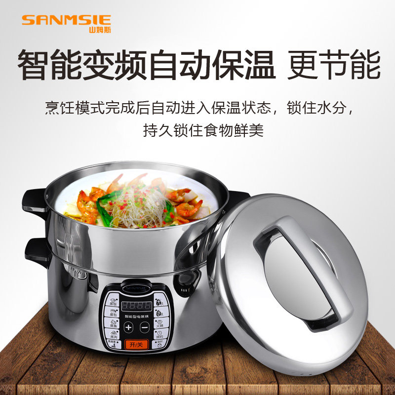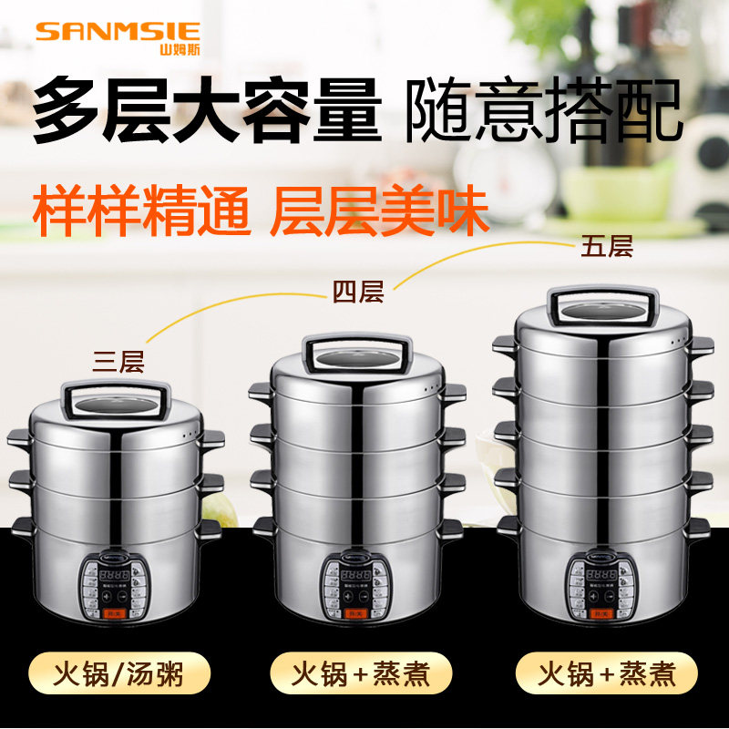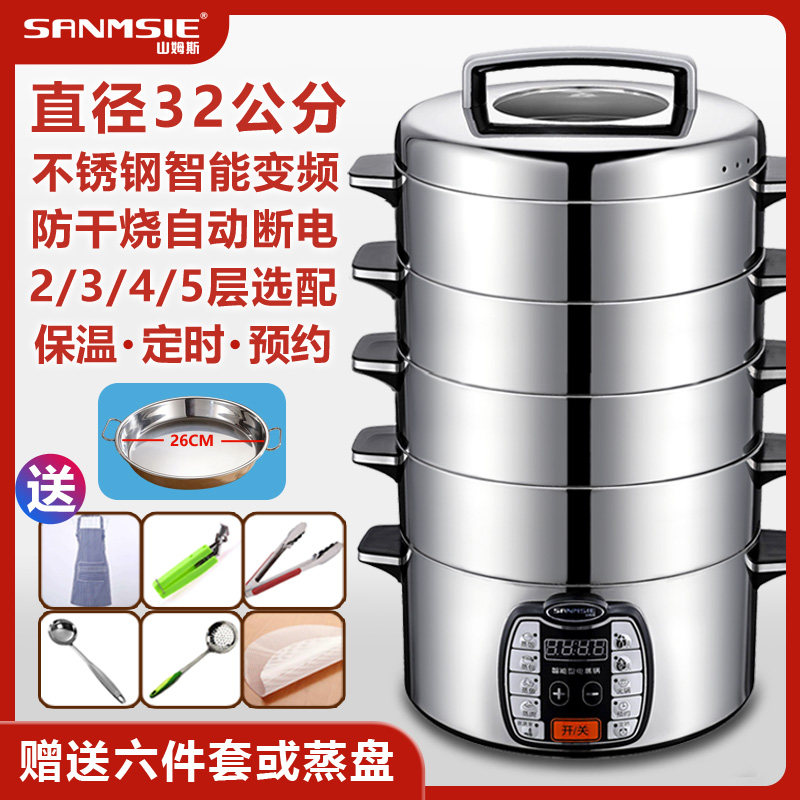 Sams stainless steel household intelligent commercial fully automatic three-layer electric steamer cage large capacity large fire multi-function
