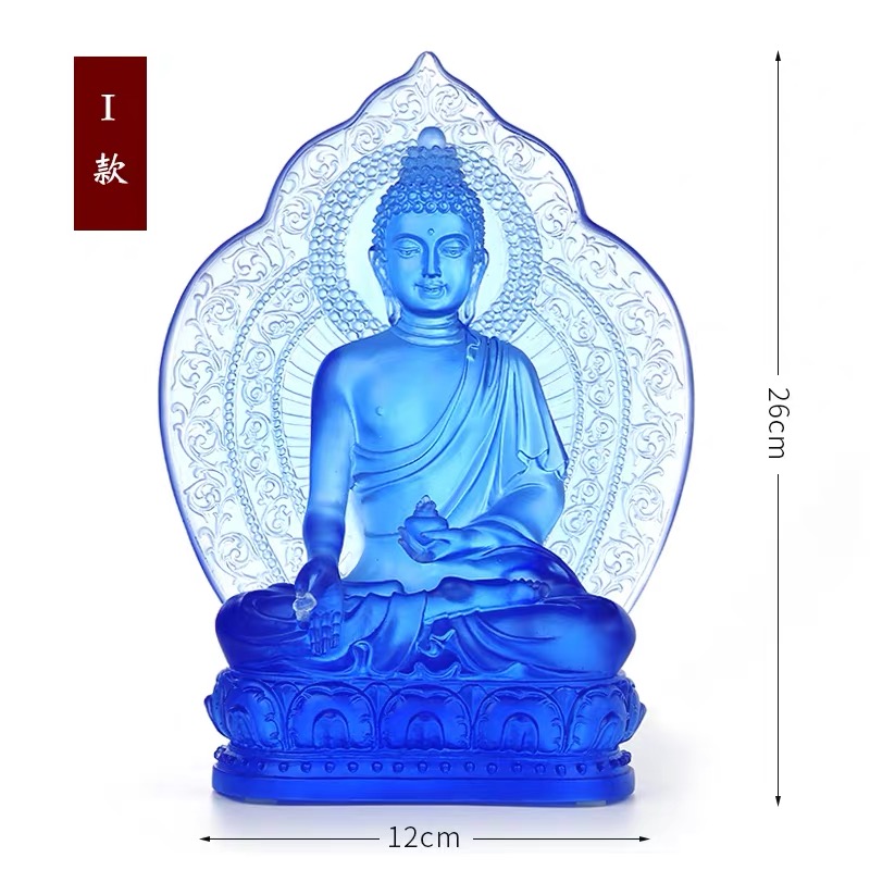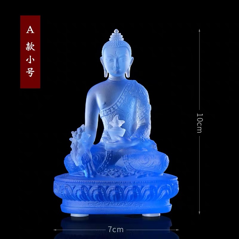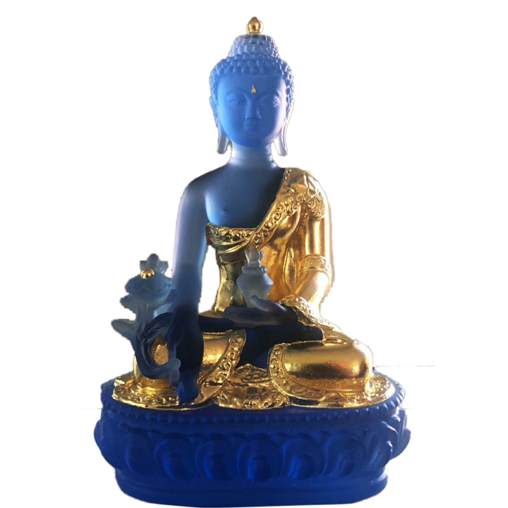 Ancient glass medicine Buddha Buddha statue home enshrines living room ornaments pharmacist glass light Tathagata gilt lotus base
