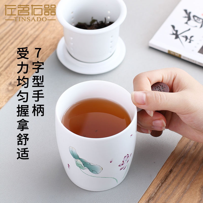 Left Tea right instrumental Mark cup with lid filter Tea Water separation Ceramics Water Cup Office Personal Special Tea Cup