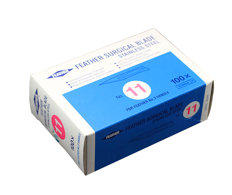 Feather No. 11 blade (one piece) Feather No. 11 blade (box 100 pieces) Boutique No. 11 single handle Feather No. 15 blade (one piece) Feather No. 23 blade (one piece) Plus