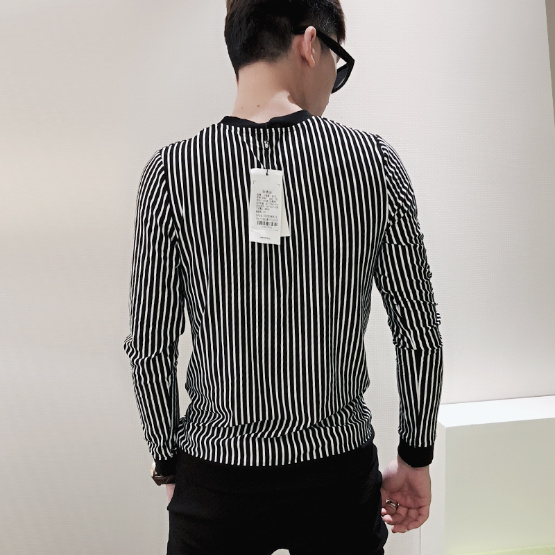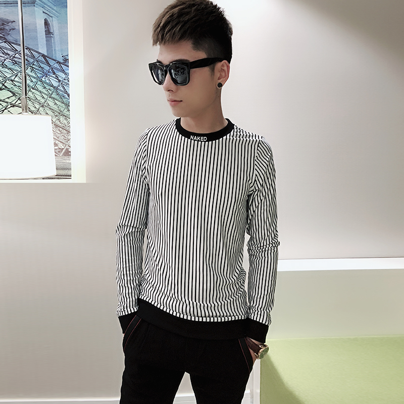 Spiritual guy long-sleeved striped T-shirt male social youth Korean version of the trend personality bottoming shirt boys T-shirt top