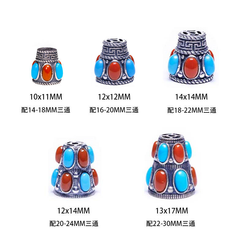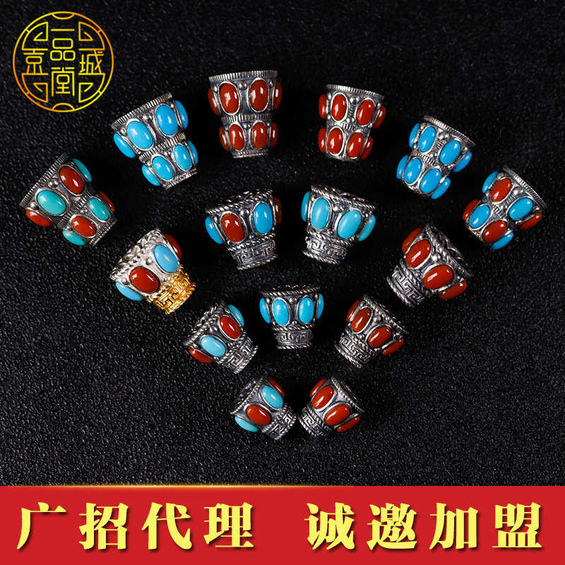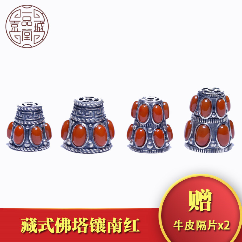 Beijing City One Pine Chapel S925 silver tee Buddha Tower Tibetan Tee Buddha Head text Play Handstring DIY Accessories Accessories