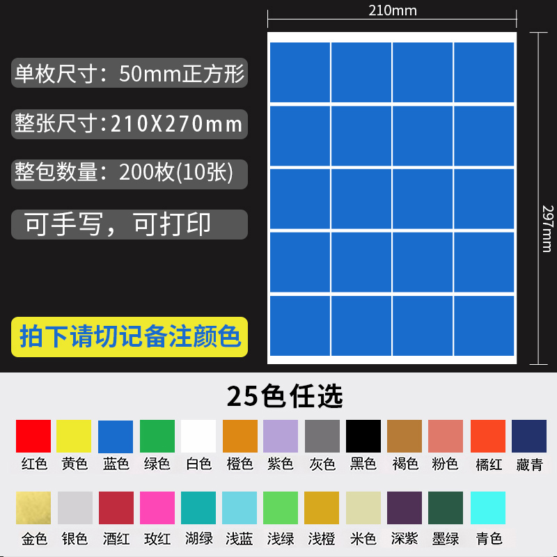 Color adhesive square label a4 laser photocopy paper waterproof adhesive envelope closure sticker round two-dimensional code square waterproof outlet for paper color mark month post digital tick sticker control patch