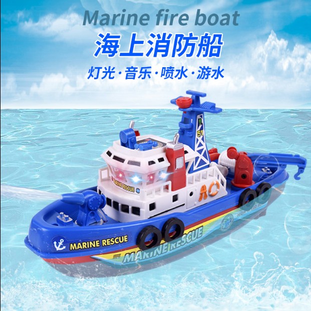 Electric offshore fire boat coastal guard ship electric spray children toy warship ship mold ship mold water bath
