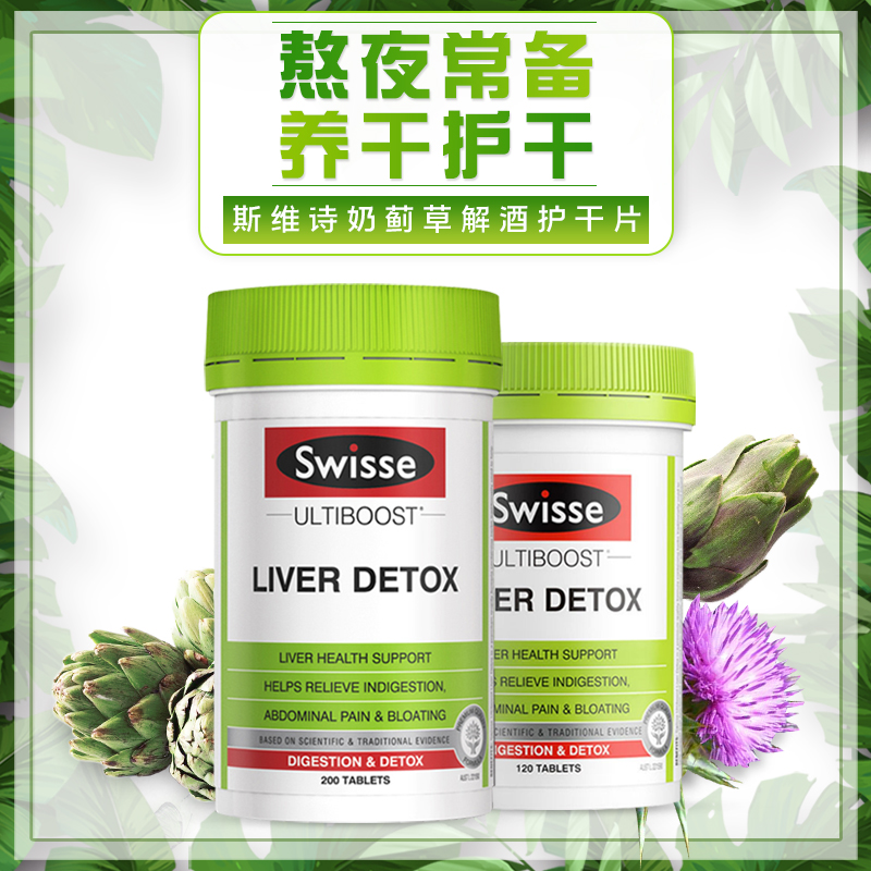 Australian swisse liver tablets 200 capsules milk thistle grass protects the liver stay up late hangover tablets hangover 120 capsules direct mail