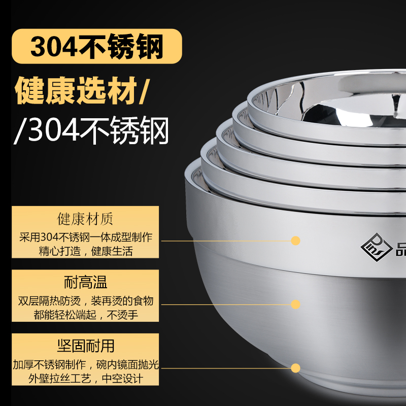304 stainless steel bowl home children's anti-fall double-layer insulation rice bowl with lid soup bowl instant noodle bowl portable fresh-keeping box