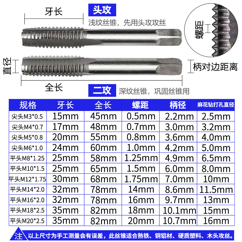 Hand tap screw tap with screw tapping screw thread drill thread drill thread taper threaded tool M3-M24 one to pay two