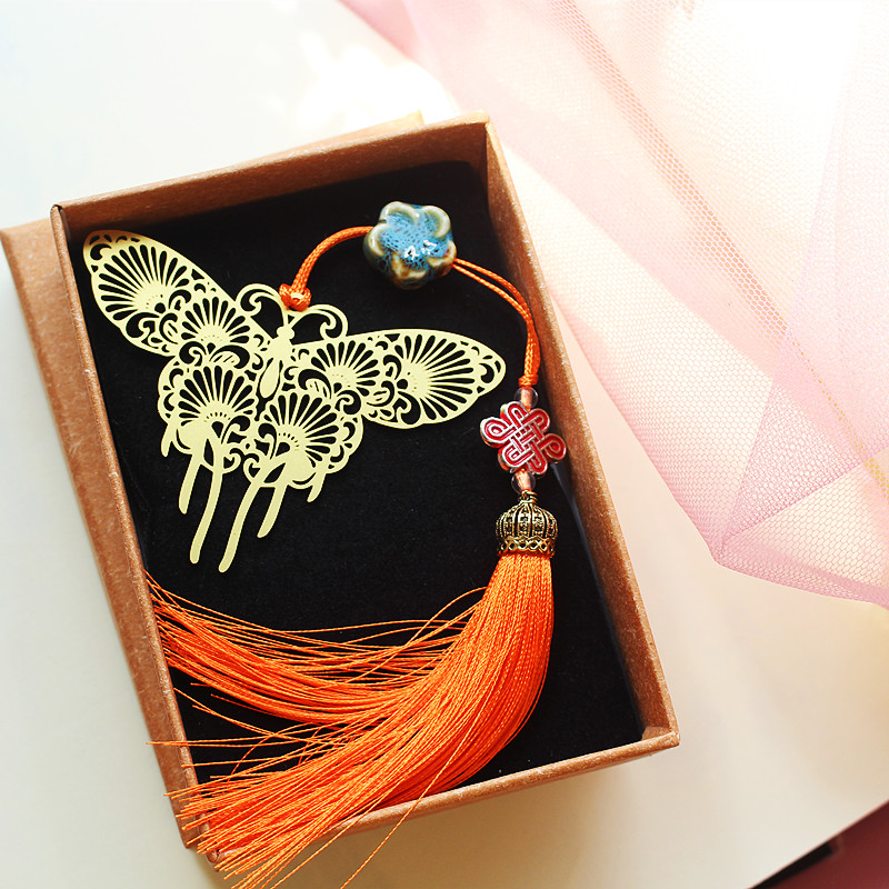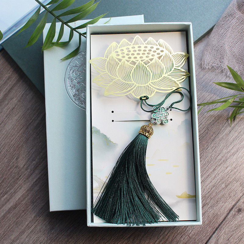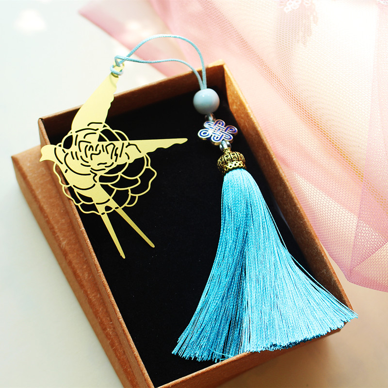 Metal brass Nasturtium Chinese Knot Tassel Lotus Bookmark gift bookmark for friends
