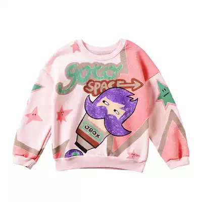 Pear small leisure children's clothing girl 2021 spring pullover cartoon graffiti sweater baby pink cotton coat