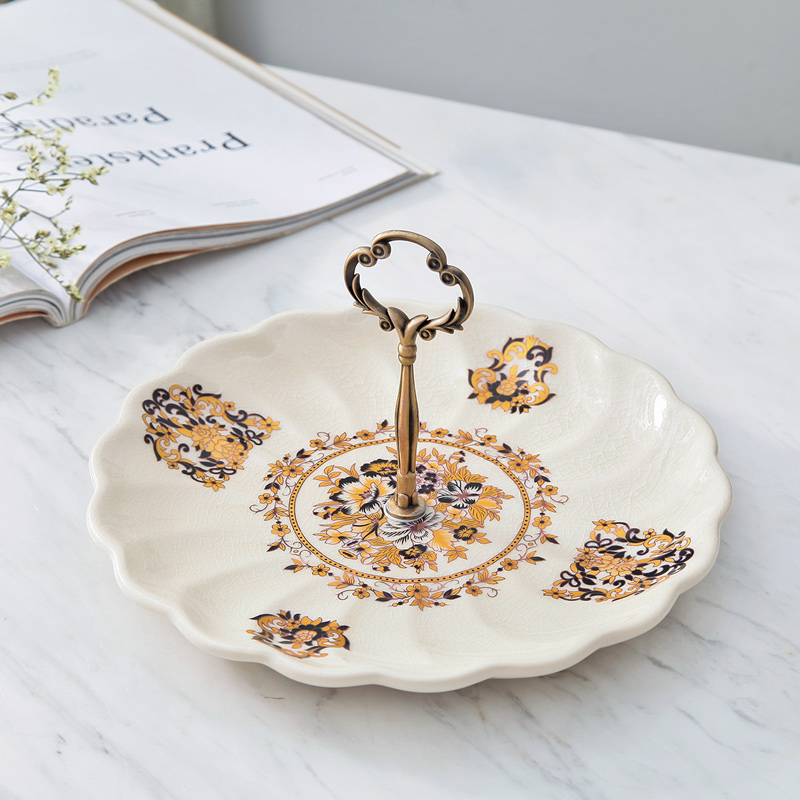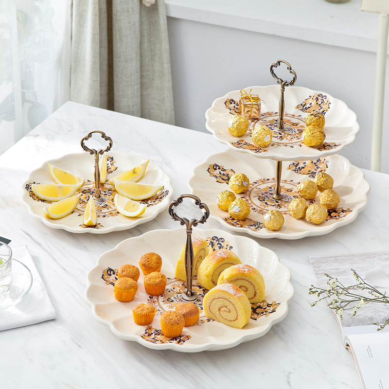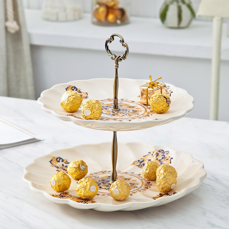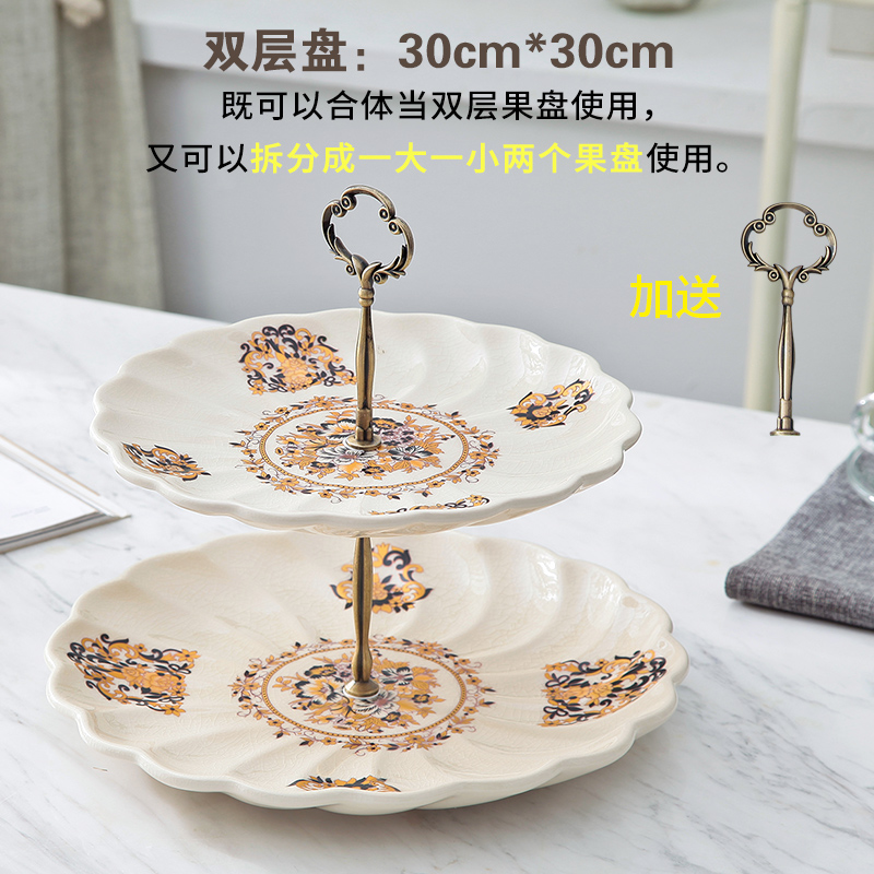Home Fruit Tray Eu Style Living Room Creative Bilayer Fruit Pan Ceramic Cake Rack Snack Pan Dried Fruit Sugar Tea Table American