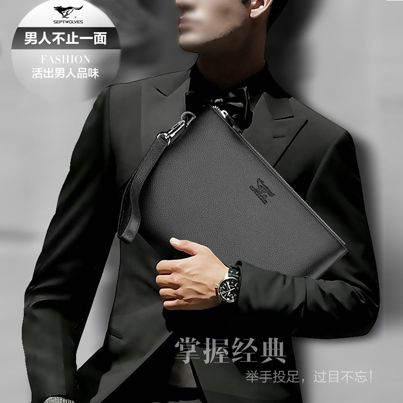 Septwolves handbag men's leather clutch bag large-capacity clutch bag men's armpit bag pure cowhide briefcase men