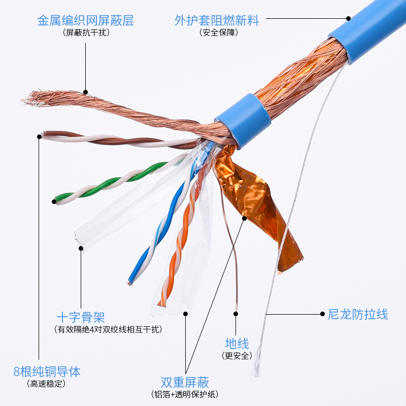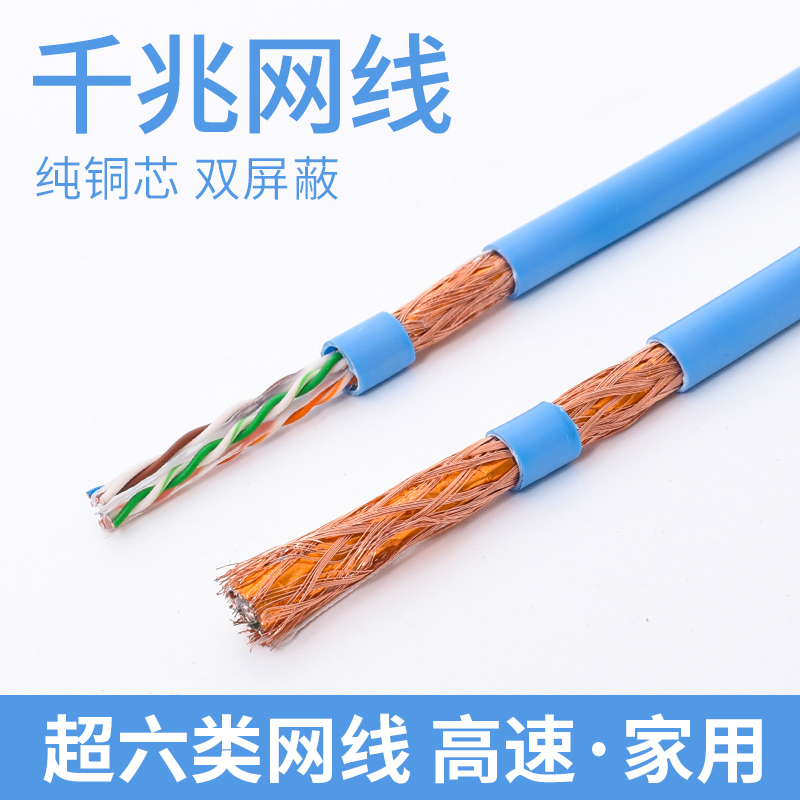 Super six network cable Household cat6e gigabit high-speed pure oxygen-free copper dual screen shield broadband outdoor finished network cable