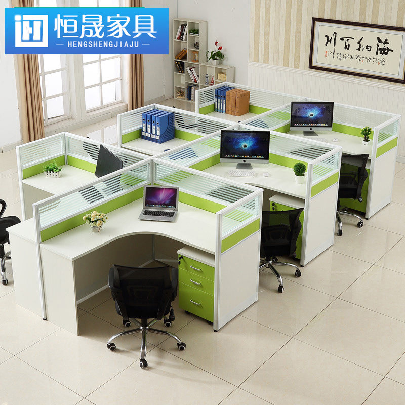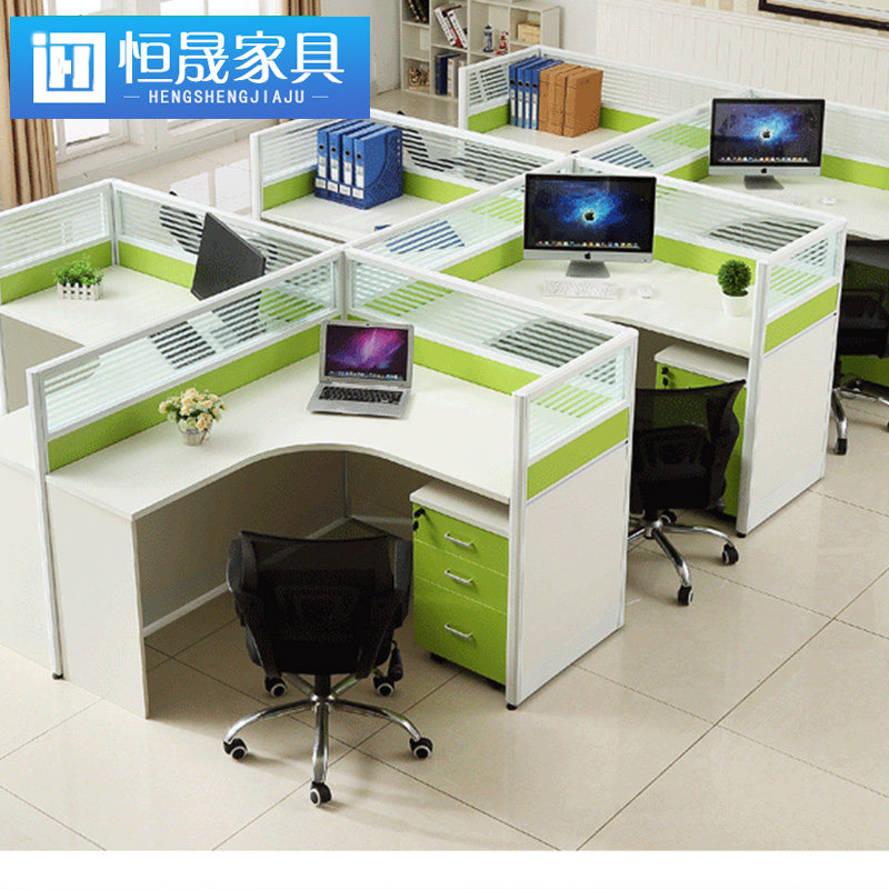 Guangzhou Office Furniture Staff Screen Desk Staff 4 Persons Desk Chair Composition Working Position Brief Modern