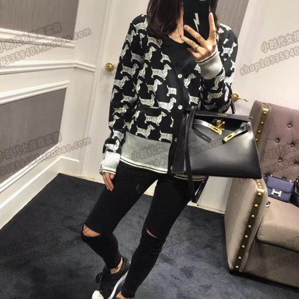 (Little Times France) Thom Browne autumn winter TB needles puppies jacquard men and women cardiovert coats