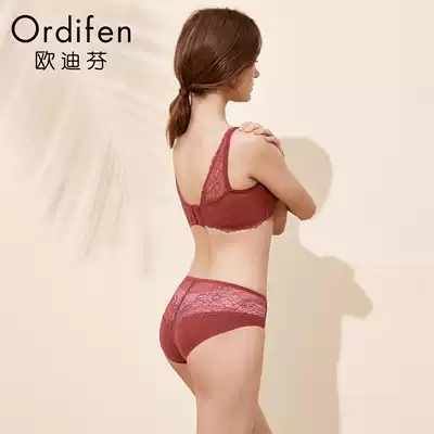 Oedifen women's underwear sexy glossy seamless non-steel ring gathering lace beauty back bra underwear underwear set