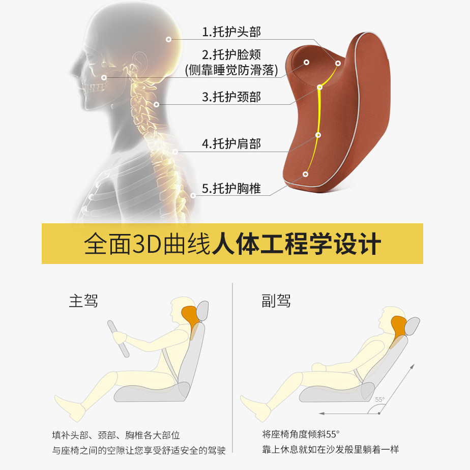 Car headrest waist memory Cotton car pillow car pillow neck pillow cushion Mercedes-Benz Universal U-shaped comfort suit