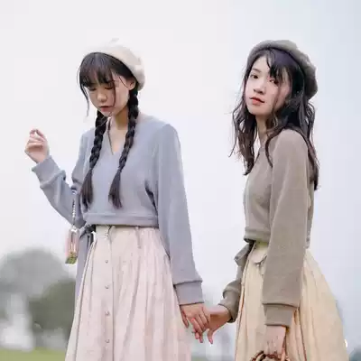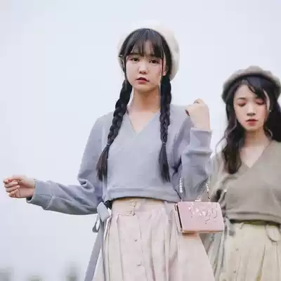 Chuan Dai: Twilight original design Mori National style girl knitted cross-collar daily Han element top