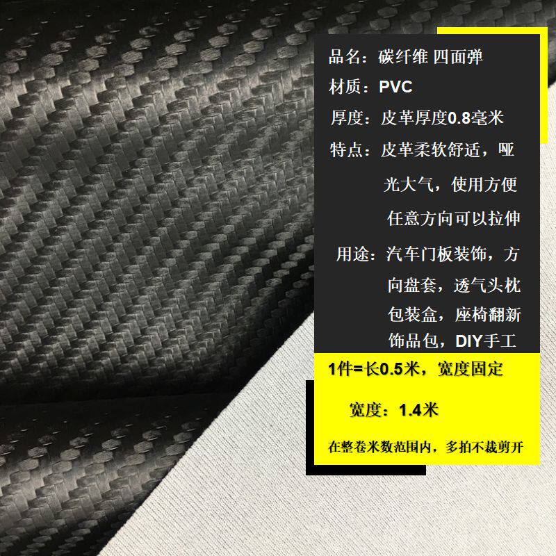 High elastic knitted imitation leather-four-sided bomb carbon fiber PVC fabric straw matting leather black sofa seat