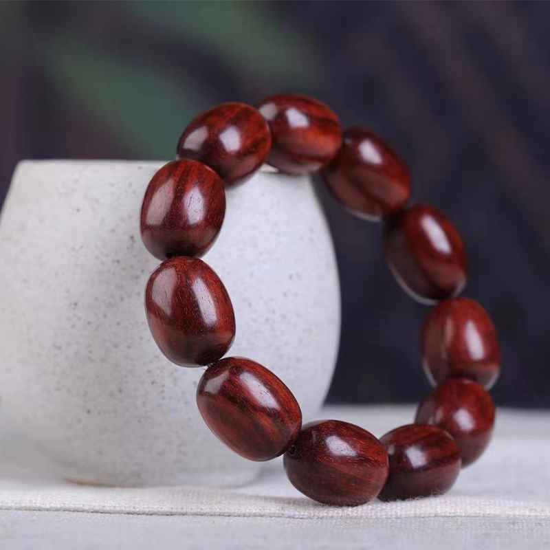 Zhenmulin small leaf red sandalwood Buddha bead bracelet authentic high-density old material jujube beads jujube-shaped barrel beads men's jewelry hand chisel