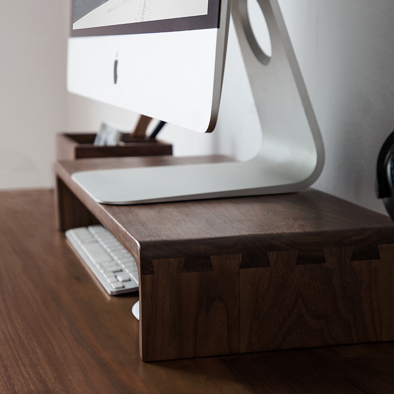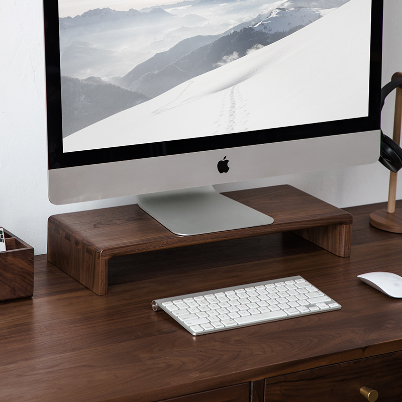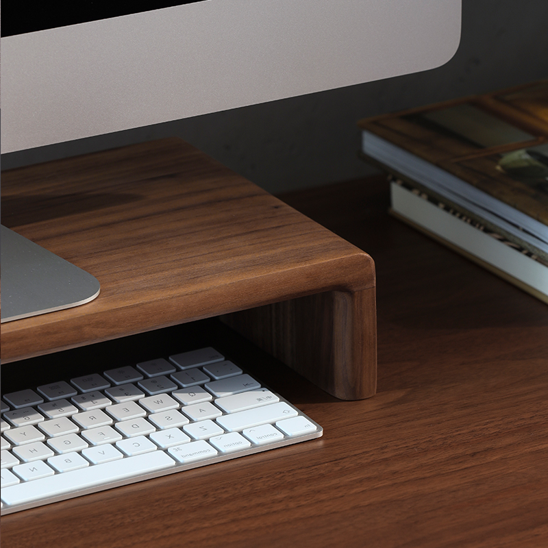 Black Walnut computer screen height-increasing base Solid wood office desktop keyboard storage pad high bracket shelf