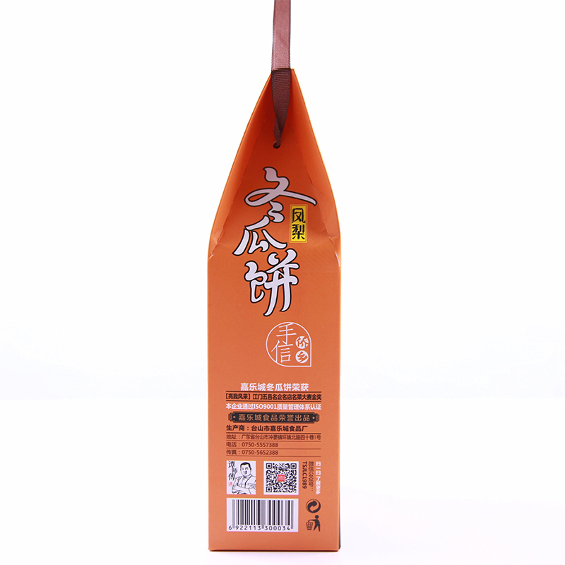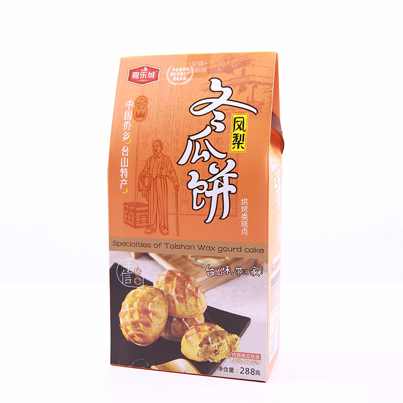 Winter melon puree (wax melon white granulated sugar, maltose, edible vegetable oil, except for oil and sugar, the content of winter melon puree in bait raw materials is 100%), wheat flour, water, glucose syrup, eggs, edible vegetable oil, edible alkaline water (water carbonated)