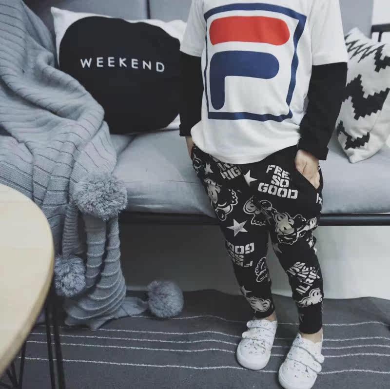 Joe Baojia Autumn New Products Male And Female Child Large Crotch Hallen Trousers Children Make Old Cartoon Print Kharen Pants