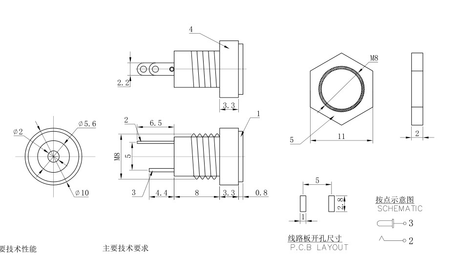 DC-022B power supply mother socket with nut panel hole mounting DC5 5 * 2 1mm-Taobao