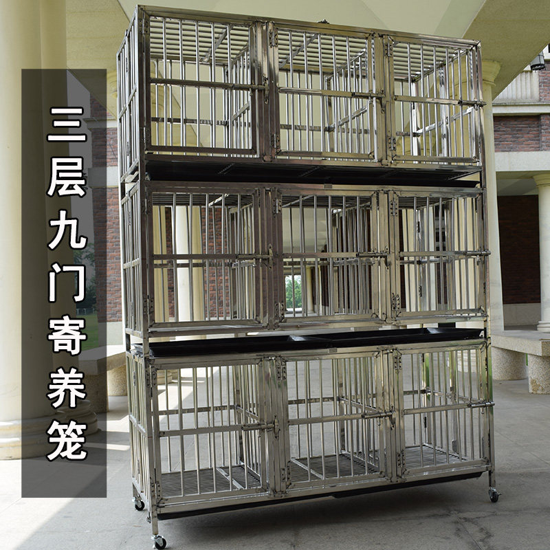 Stainless steel folding dog cage with two layers of three layers of multilayer combined primary-secondary cage small dog pet shop foster cage