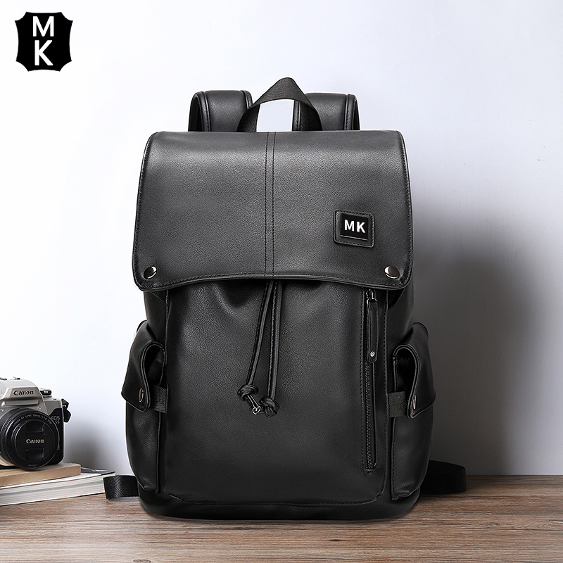MK backpack men's leather large-capacity computer bag travel bag soft leather fashion trend backpack schoolbag junior high school male