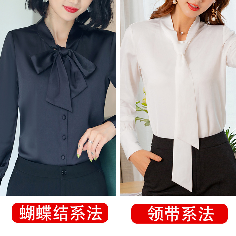 Butterfly-knit shirt female acetic acid spring female tie Chispun tops red professional long sleeve shirt