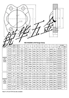 Hydraulic open high pressure tubing SAE two-piece integral open flange Light FL heavy duty FS hydraulic flange clamp