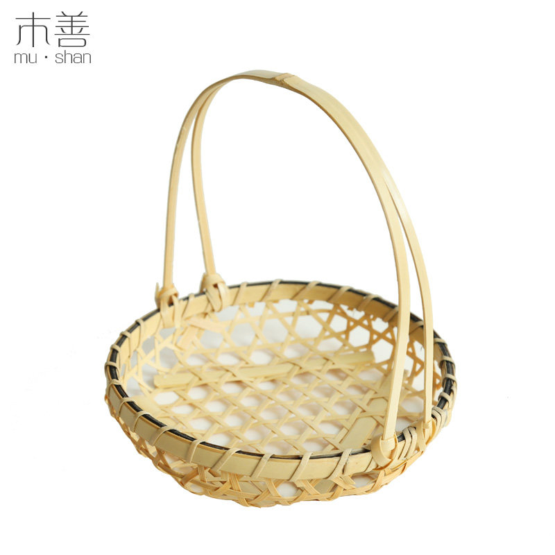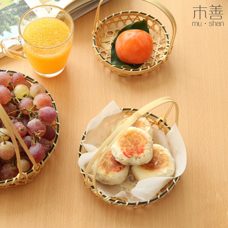 Wood Good Bamboo Choreographer Basket Nacelle Hollowed-out Tea Point Basket Dried Fruit Basket Fruit Basket Small Hand Dried Fruit Pan