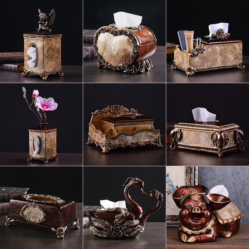 European-style vintage tissue box American luxury multi-function remote control storage box draw paper living room light luxury coffee table ornaments