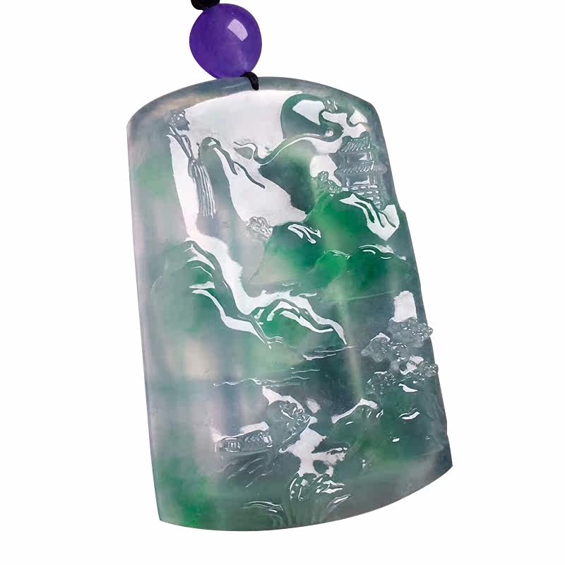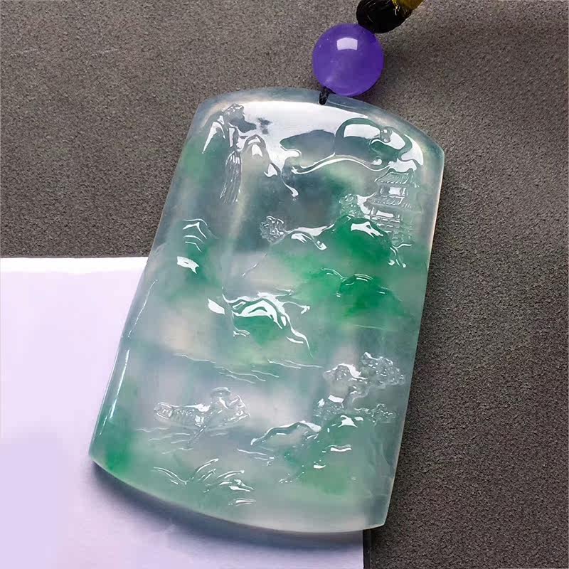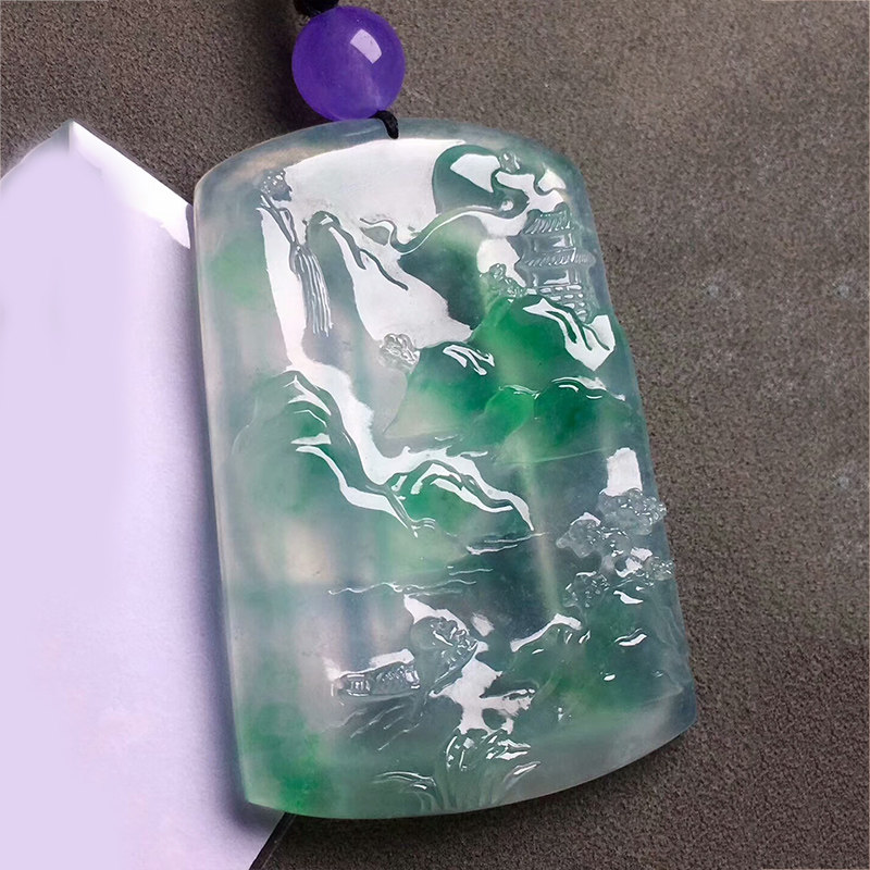 Source Yuxing Myanmar natural jade A perfect kind of good ice floating green landscape brand