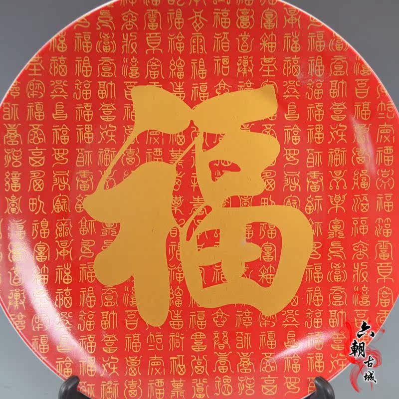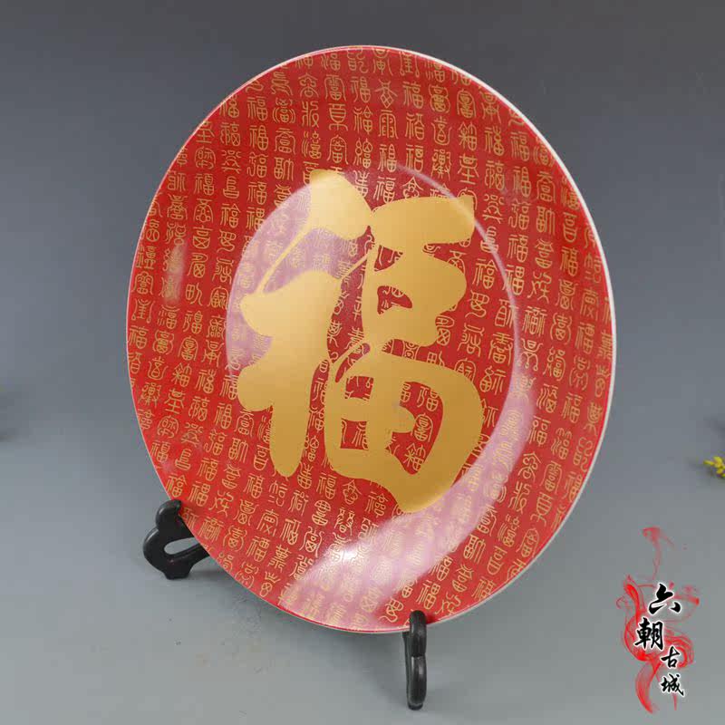 Ancient play collection antique Jingdezhen Ceramics Decoration Plate Fu Character hanging disc Home Decorative Pendulum piece delivery bracket
