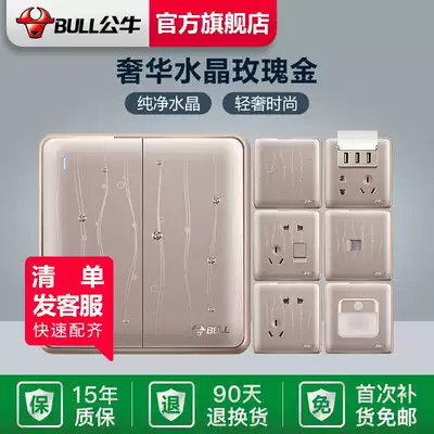 Bull socket Flagship switch socket Type 86 large panel household power socket USB five-hole rose gold G29