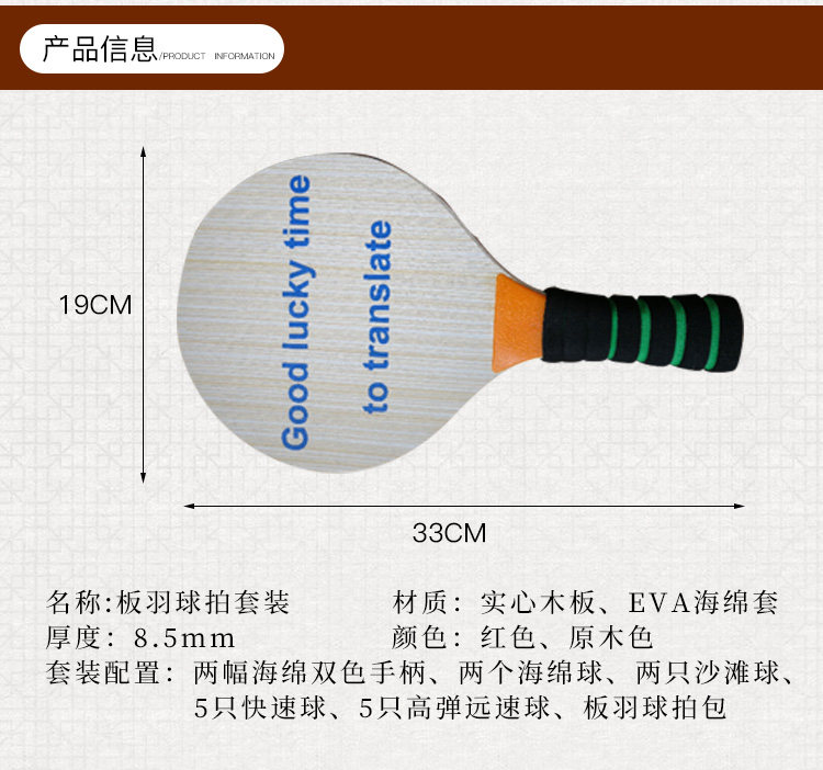 Board plume racket classic thickened 8 5 mm oak veneered three-wow racket with three-fur-ball beach ball