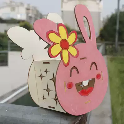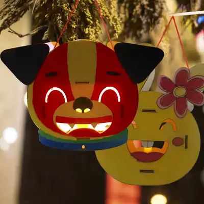 Mid-Autumn Festival portable pig lantern diy Kindergarten Children's cartoon creative assembly handmade wooden luminous lantern