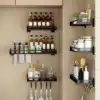 Non-perforated stainless steel kitchen seasoning shelf Wall-mounted black seasoning multi-function shelf Wall storage shelf