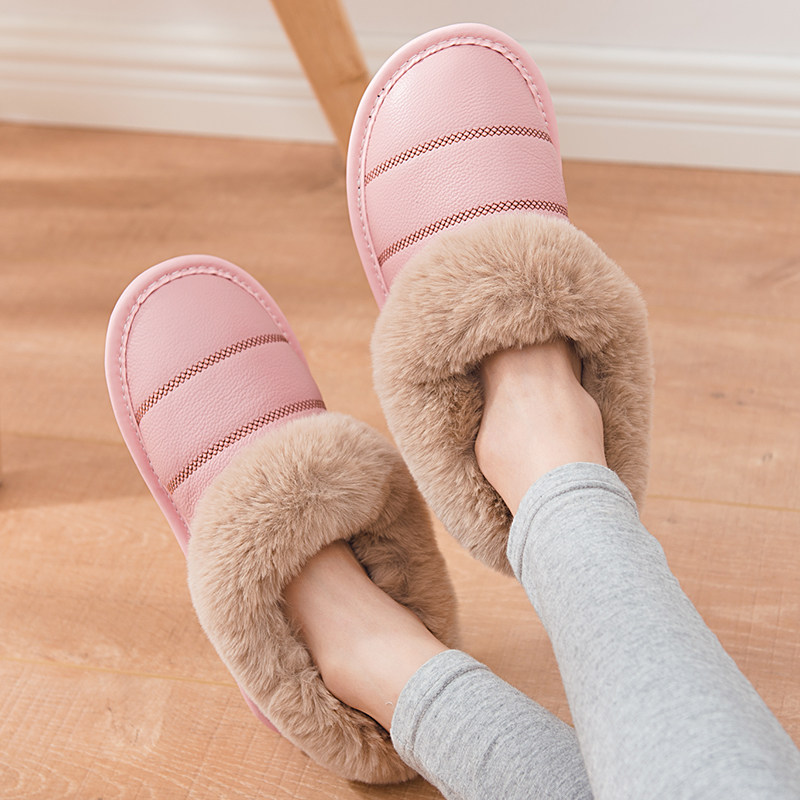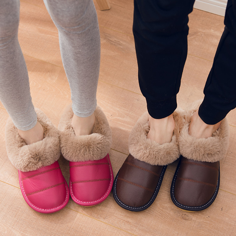 Winter bag with cotton slippers thick bottom winter home household indoor floor non-slip men and women leather warm wool slippers