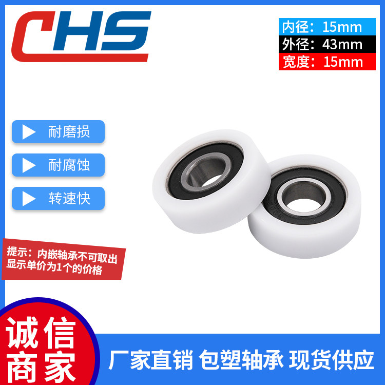 Plastic-coated bearing pulley roller BS620243-15 rubber wheel nylon plastic wheel outsourcing POM plastic wear-resistant