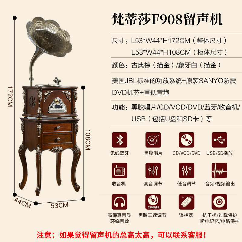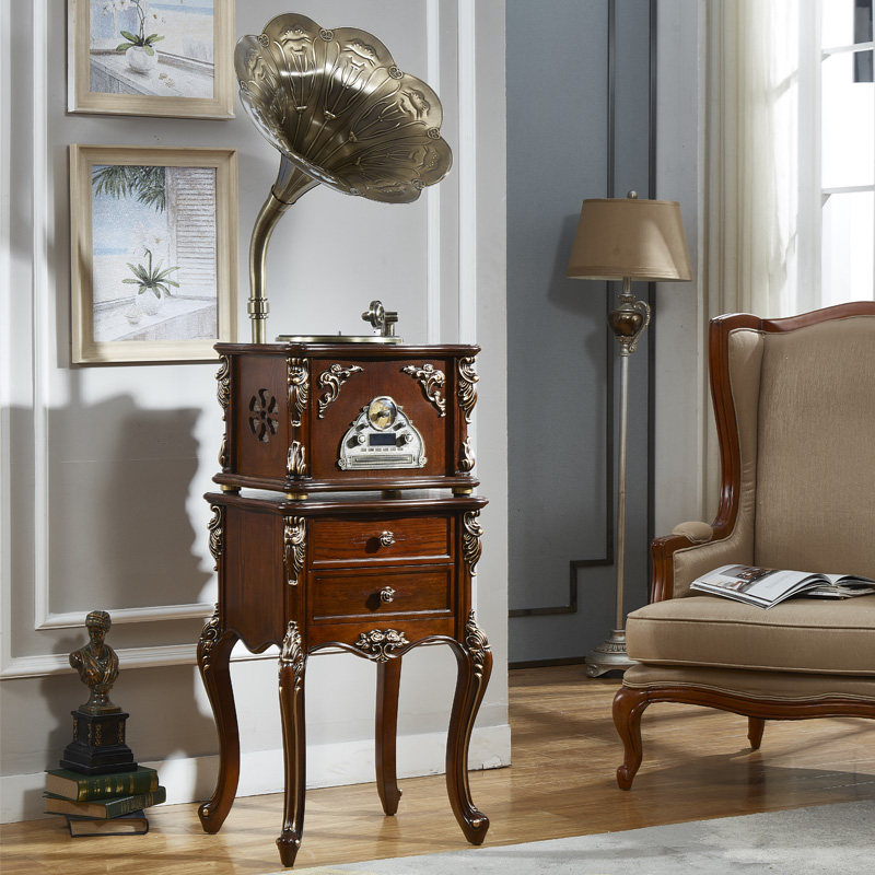 Sanskrit new vintage solid wood old vintage retro grammaine machine antique black glue record machine European-style living room classical electric record machine