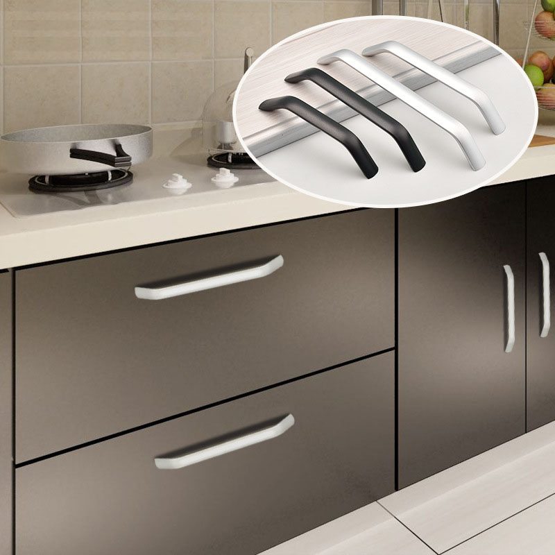 Hole distance 96128160192224288320 space aluminum overall cabinet door handle black silver color wardrobe handle