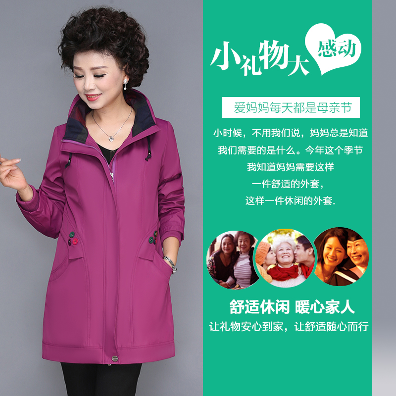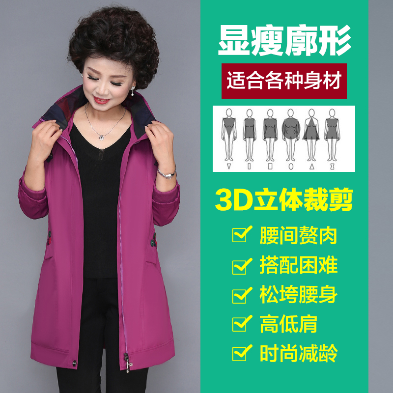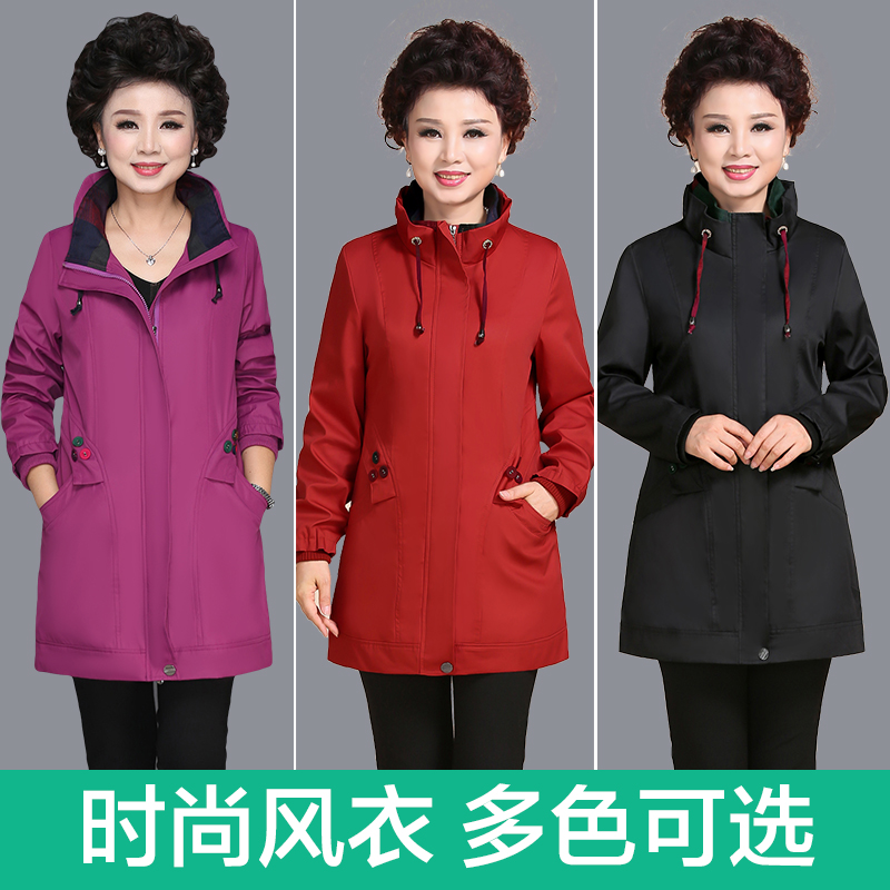 Middle-aged and elderly mothers spring and autumn windbreaker women's mid-length Western style coat 2022 new middle-aged wide wife autumn top
