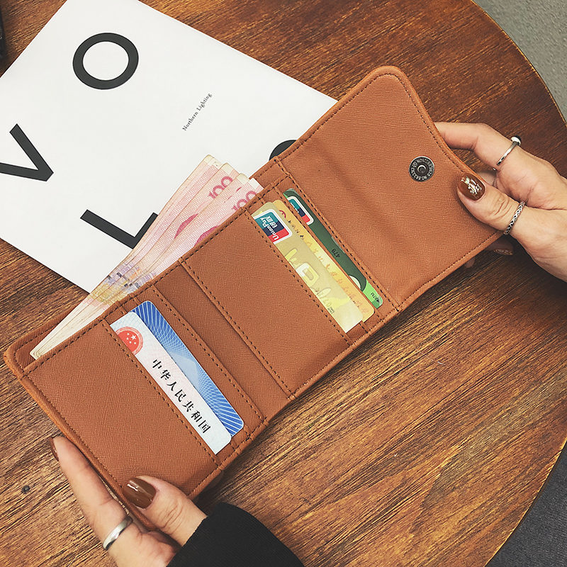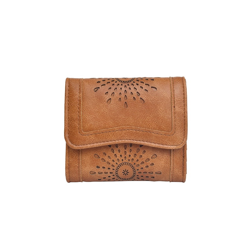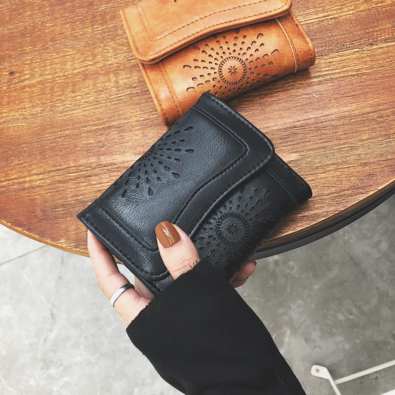 2023 new wave Korean version of small wallet female short section Ins retro 3 folding Mori system hollowed-out student female zero money clip-Taobao