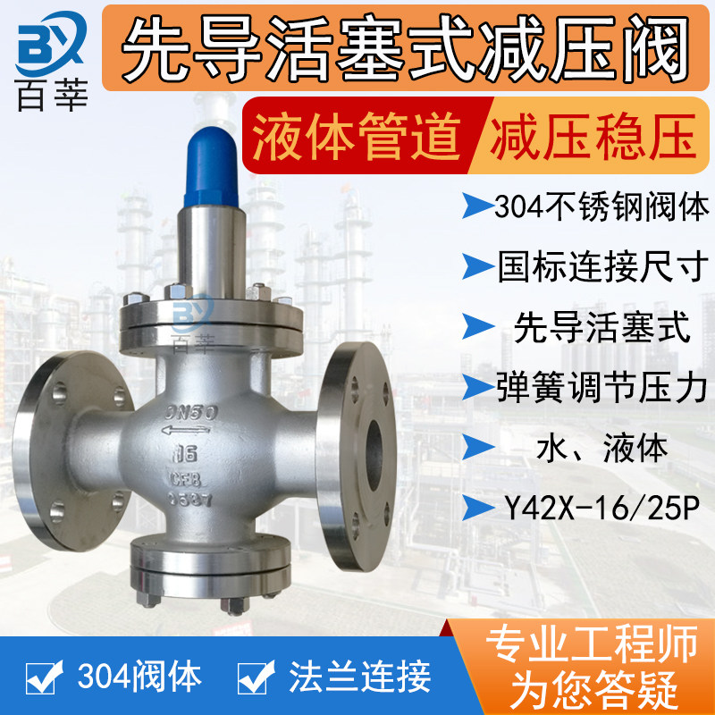 304 stainless steel flange pressure reducing valve Y42X-16P25P pilot piston type water-liquid special pressure regulating valve 25