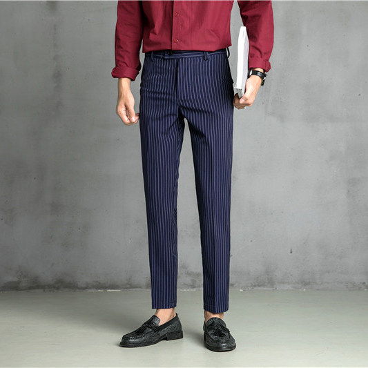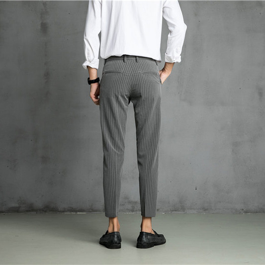 Summer new pint men's large size striped 90% pants plus fattening fatter chubby chubby casual Inron casual pants