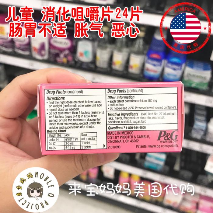 Spot American Pepto kids children's intestinal *stomach discomfort diarrhea *diarrhea digestion flatulence nausea chewable tablets 24 pieces