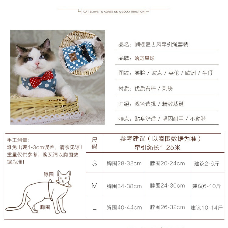 Cat-traction rope rope walking cat rope strap anti-break bolt-threaded cat-rope vest kitten chain